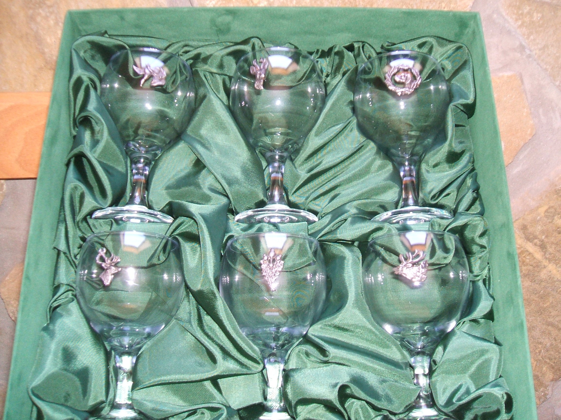 Díszes pohárkészlet.Fém cimkékkel. -